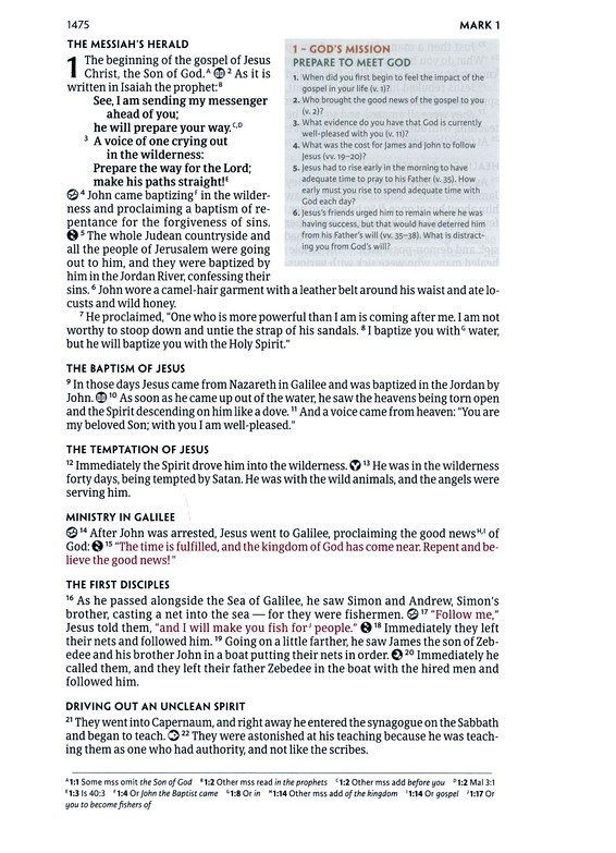 • Designed icons on every page identify select verses that display the seven realities of Experiencing God and two steps of Fresh Encounter found throughout God’s Word