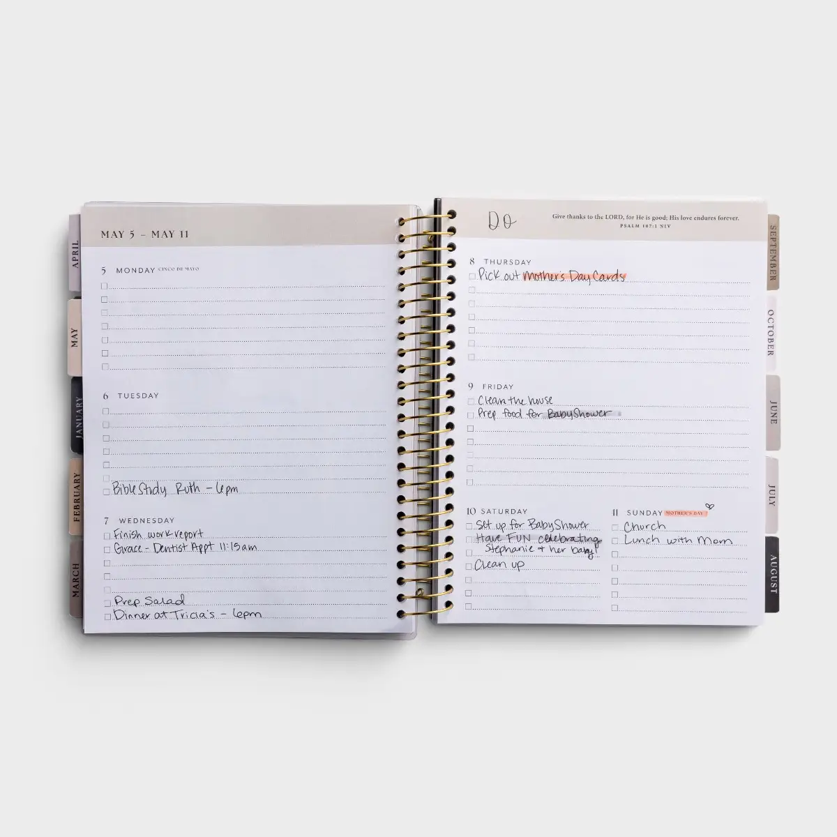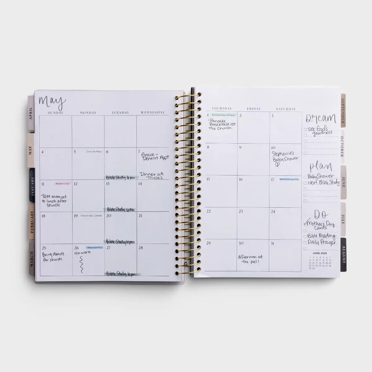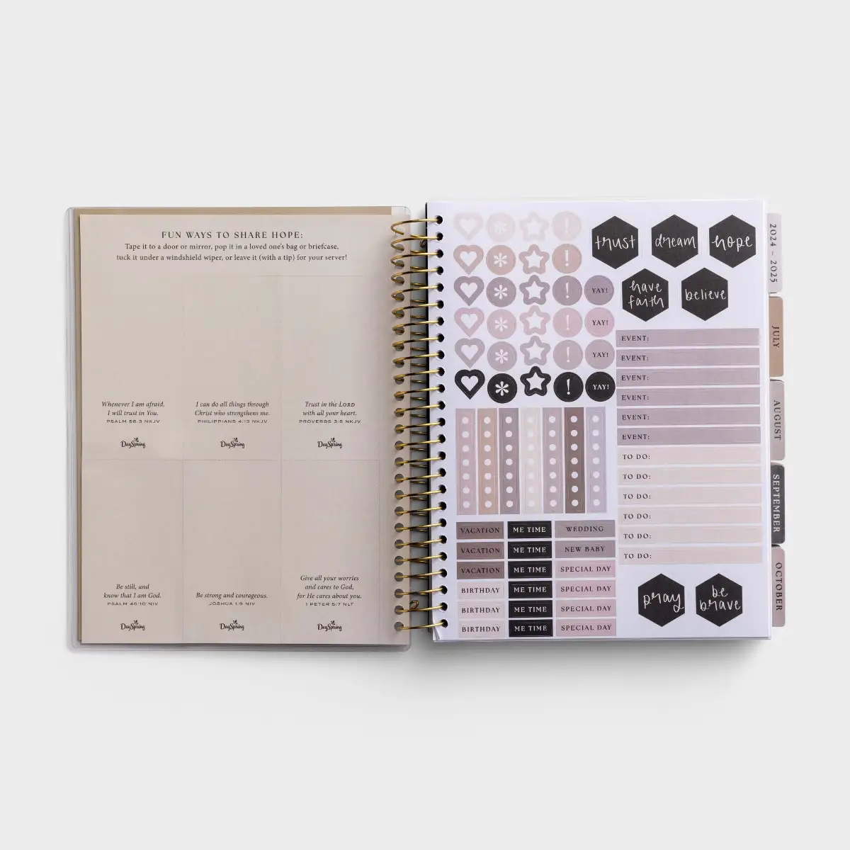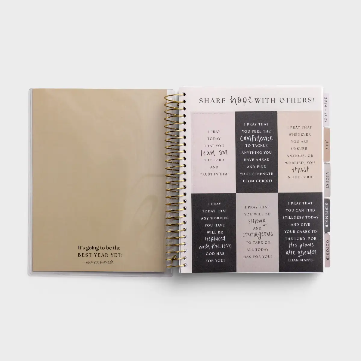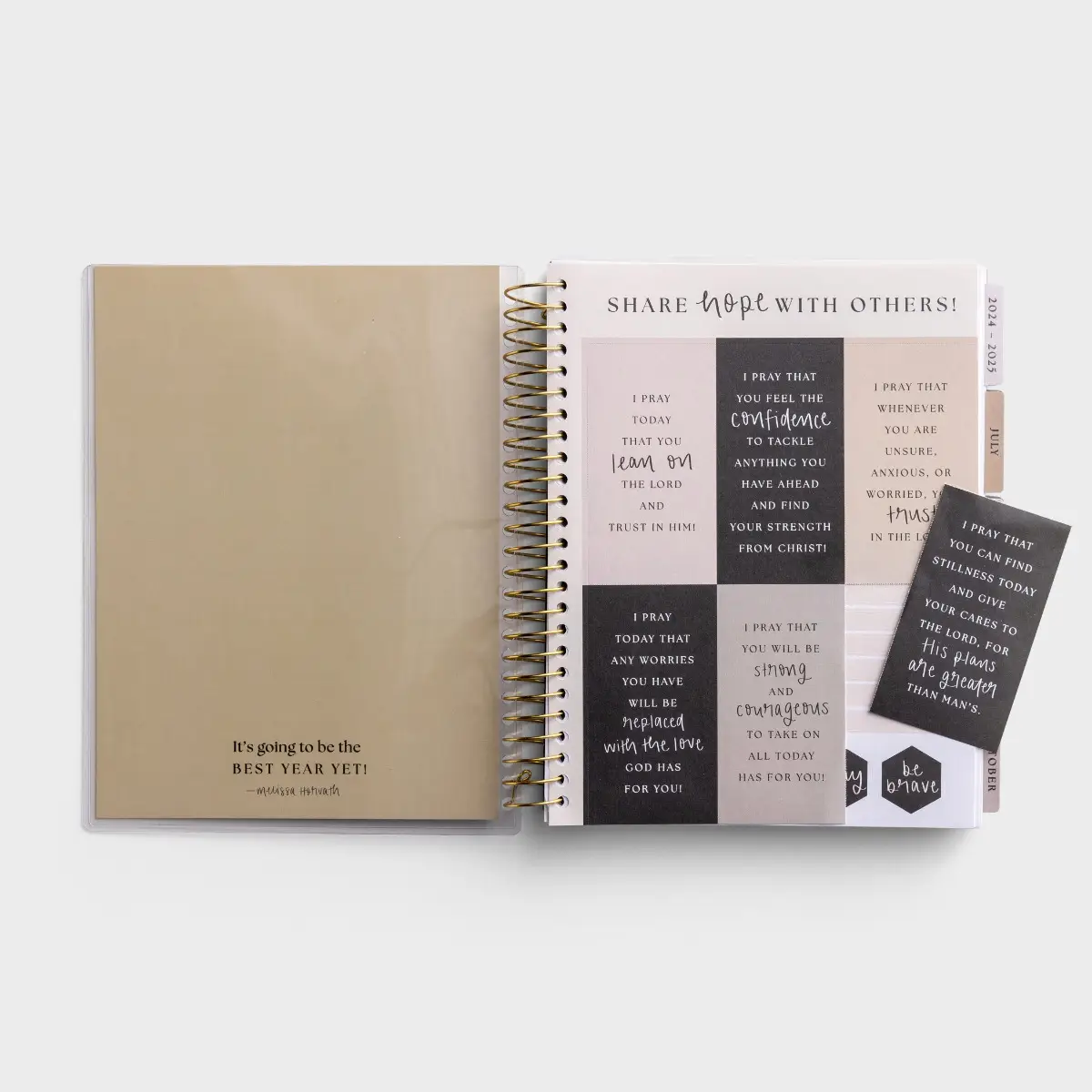 Keep track of your busy life while staying inspired with the Melissa Horvath ‘Dream Plan Do’ 18-Month Planner from DaySpring. With an July 2024 start date, this comprehensive planner offers ample space for all your schedules, tasks, goals, and reminders. Beautifully designed with a laminated cover and tabs, this planner also features an interior pocket page, colorful label pages, and perforated notes to share hope. It’s the perfect tool to help you stay organized, encouraged, and motivated throughout the year. Melissa is the eternal cheerleader, so it makes sense that her 18-month planner, Dream Plan Do, features encouraging notes from Melissa cheering you on through every day, week, and month. Find hope through Scriptures that are purposely placed to provide wisdom, strength, and hope.